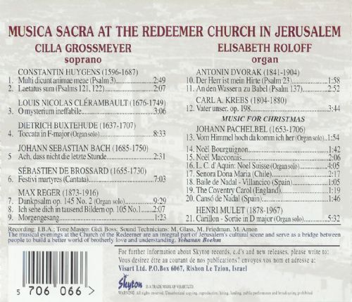 ביצירה מוסיקלית זו ,חברו זמרת הסופראן היהודית הבינלאומית צילה גרוסמייר ונגנית האורגן הנוצרייה אליזבט רולוף, לקונצרט מוסיקלי המגשר בין דתות ותרבויות. |